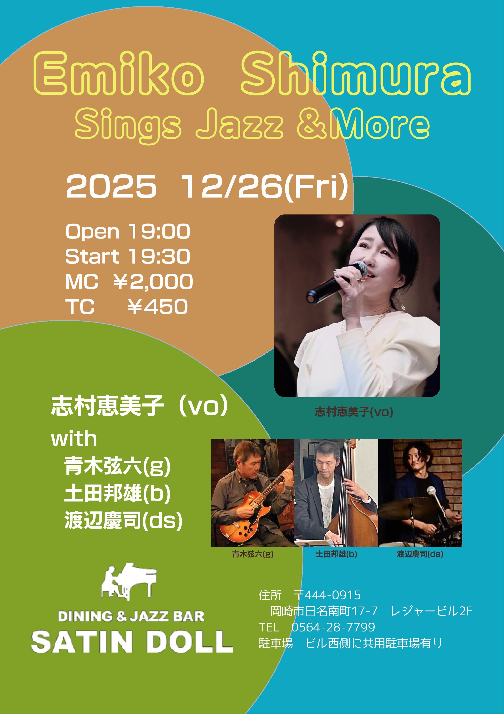 青木弦六(Gt)、土田邦雄(Bs)、志村恵美子(Vo)、渡辺慶司(Dr) 2000円